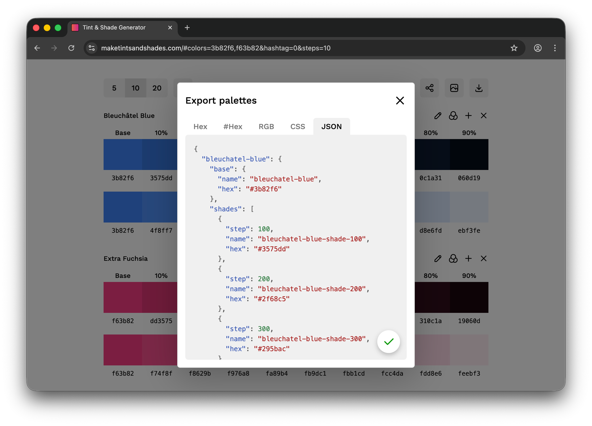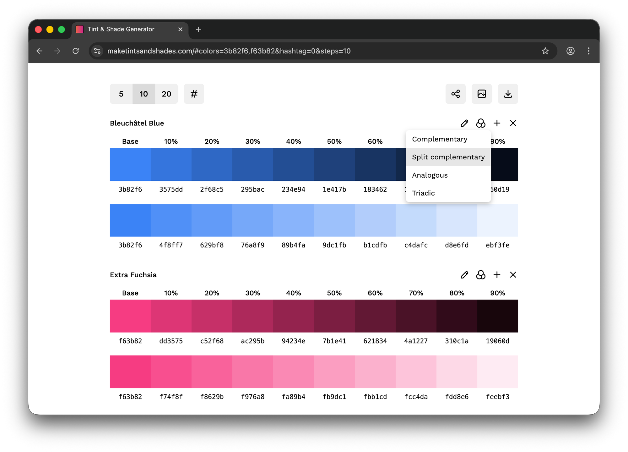 The Tint & Shade Generator is an open-source web app for accurately producing tints and shades from a given hex color in configurable increments. It has become one of the most popular color tools on the web, used by designers, developers, educators, and data analysts in over 180 countries.